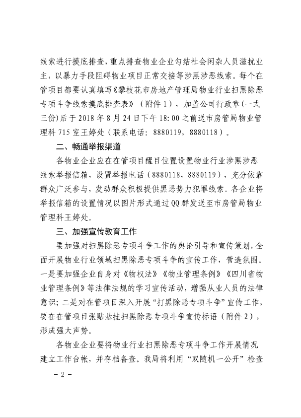 攀枝花市房管局關(guān)于深入開展物業(yè)行業(yè)“掃黑除惡專項(xiàng)斗爭”的通知
