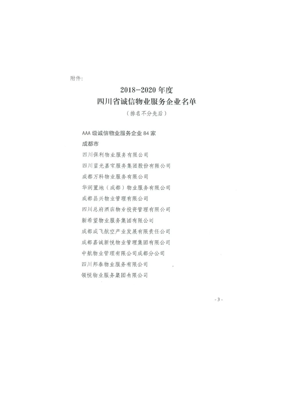 關(guān)于公布“2018-2020年四川省誠(chéng)信物業(yè)服務(wù)企業(yè)”名單的通告